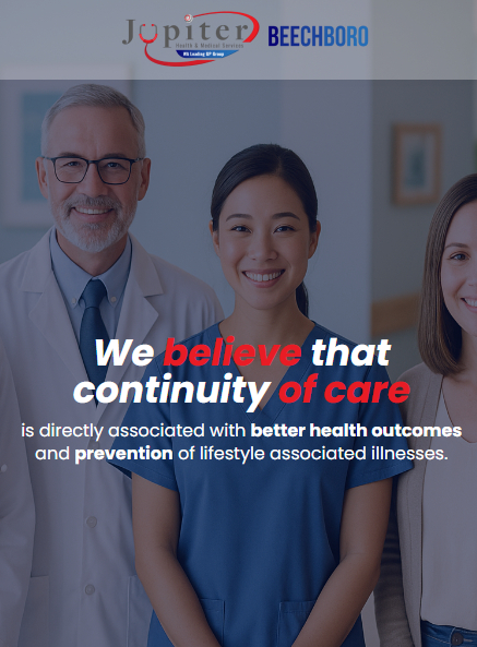 - Jupiter Health Beechboro is a family-friendly medical practice in Western Australia, offering a wide range of healthcare services including general practice, skin cancer checks, cosmetic care, and telehealth. The website was designed entirely from scratch with Elementor and completed in about one week, featuring a clean layout, easy navigation, and seamless online booking.